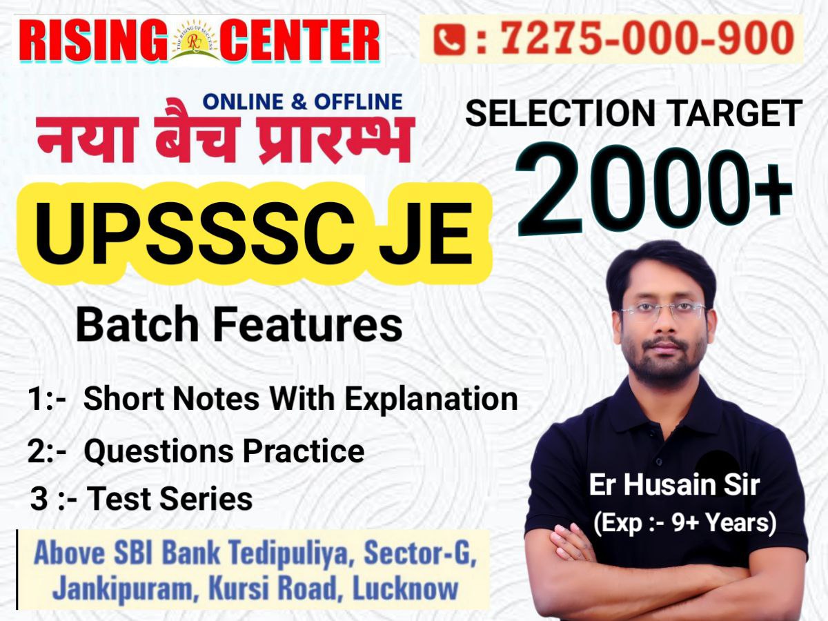 This Batch is for only for UPSSSC JE. Syllabus Cover - All Technical Subjects. FULL TEST SERIES :- 15 LECTURE- EXAM ORIENTED AND QUESTION PRACTICE.
