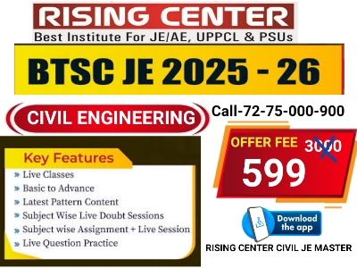 CLASS TYPE- LIVE+ RECORDED SYLLABUS COVER- ALL CIVIL ENGINEERING SUBJECTS GIVEN BY BTSC JE VALIDITY - 12 MONTHS